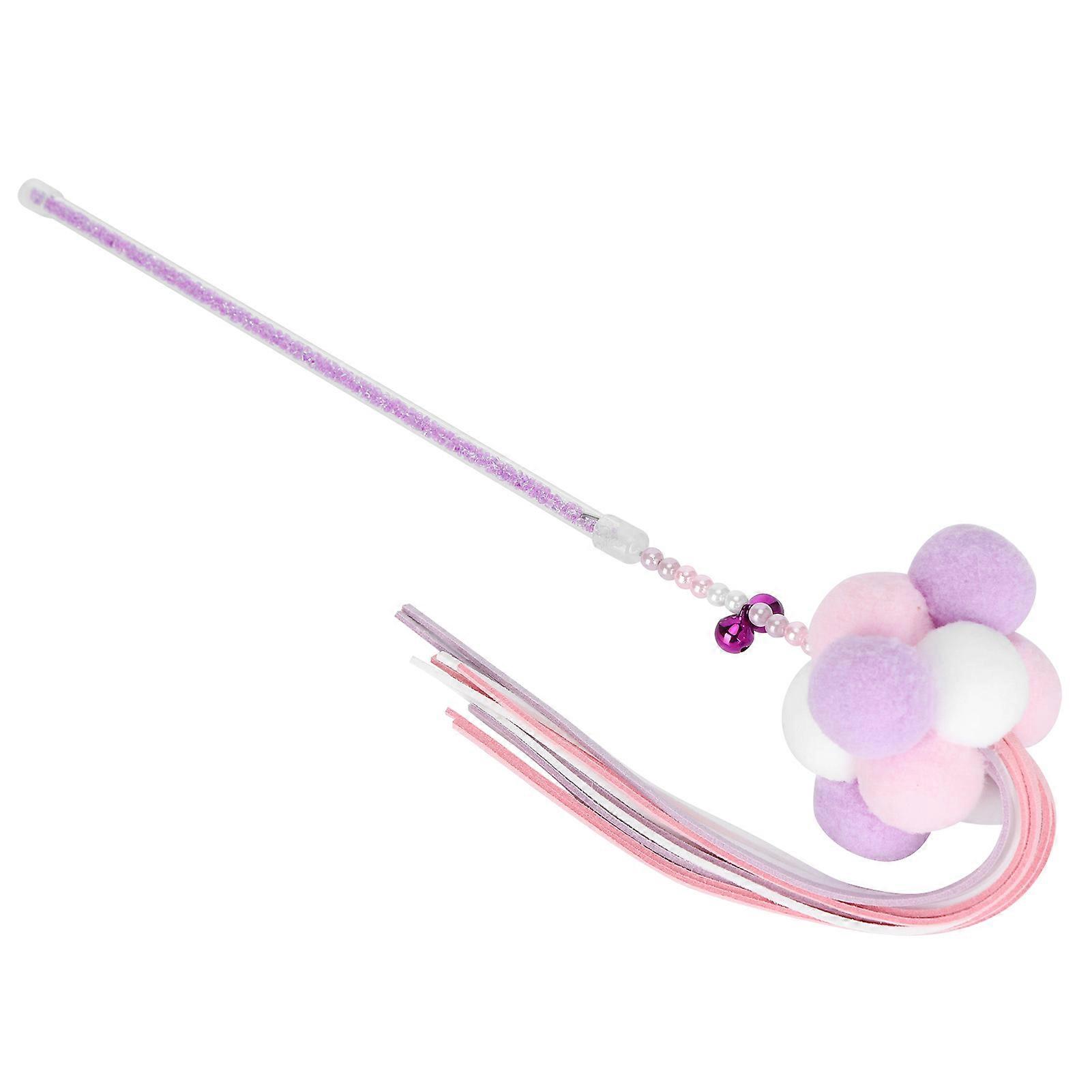 Pet Cat Tassel Playing Stick With Bell And Plush Ball Cat Interactive Training Toypurple