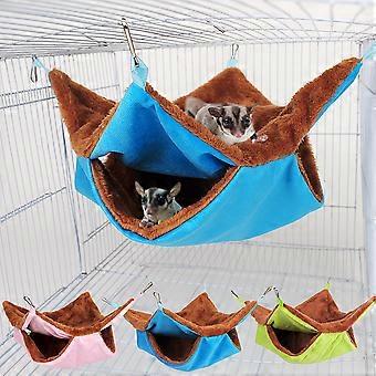 Pet Hanging Hammock Double Layer Squirrel Nest for 2Pcs Green Plush Bed