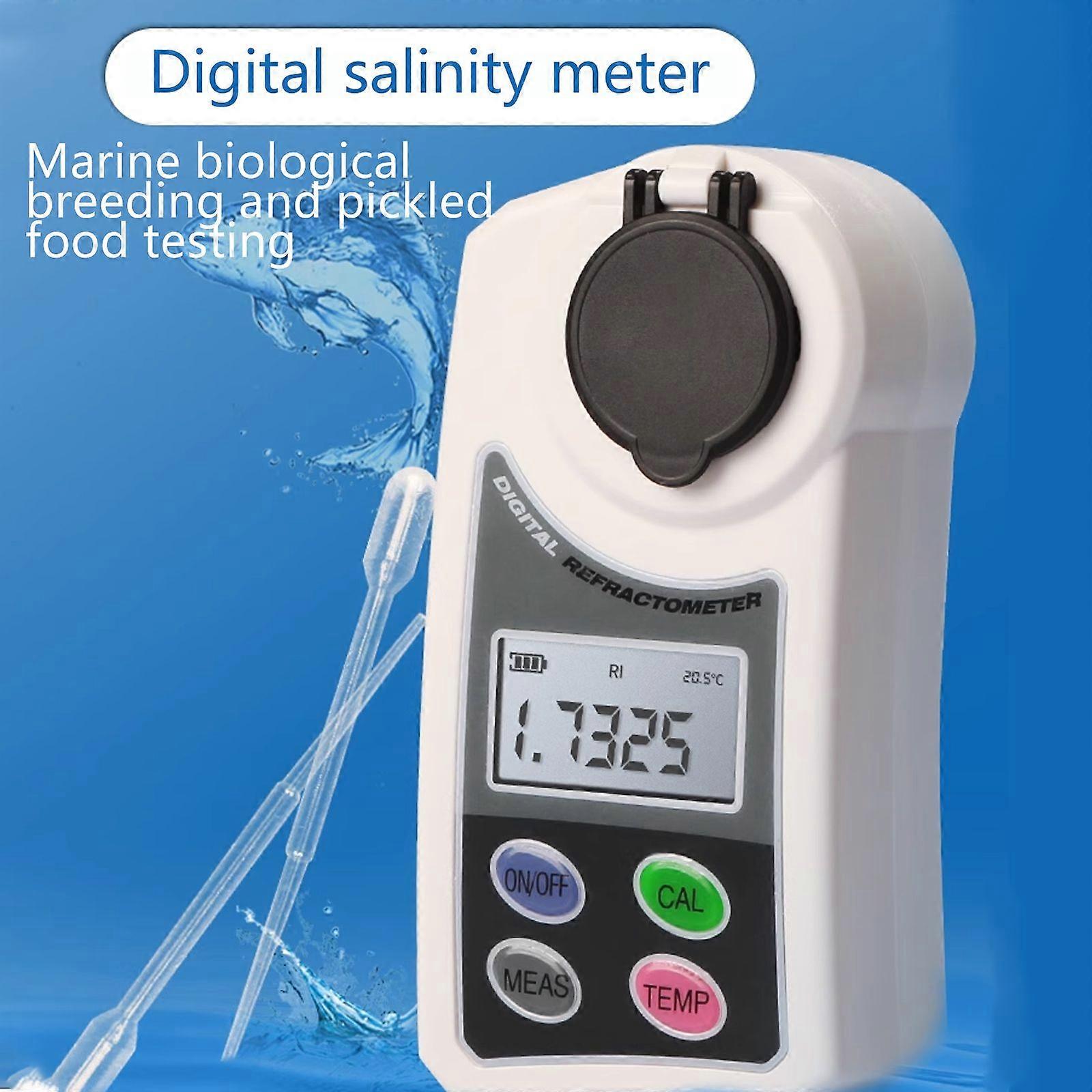 Note: The parcel will be sent without battery ,The battery type is 2 pcs AAA battery About products The AMSZ-Y digital display salinity meter is a digital display high-precision optical instrument designed using the principle of refraction. It is small and beautiful, easy to use, and has a large LCD digital display. As long as a drop of sample solution is placed on the prism, the measured value will be displayed within 3 seconds, which can avoid subjectively erroneous numerical interpretation. Professionally used in various pickles, kimchi, pickled vegetables, salted food, marine biological feeding, aquarium, physiological saline preparation and other fields. Characteristic & Function 1 Automatic temperature compensation function. 2 Battery-powered, low power consumption, no operation automatic shutdown function within 2 minutes. 3 Refractive index/salinity conversion. 4 No moving parts, high sensitivity and wide dynamic linear range. 5 The amount of samples and reagents is small, and the analysis speed is fast. Specification project Technical scope Measuring range 0.0-28.0% Index value 0.1%10.1 Accuracy +0.2%11 Use environment 10-40 Sample size 20.2ml(3-5)drop measure time =3S power 2 AAAalkaline batteries Battery Life =2000