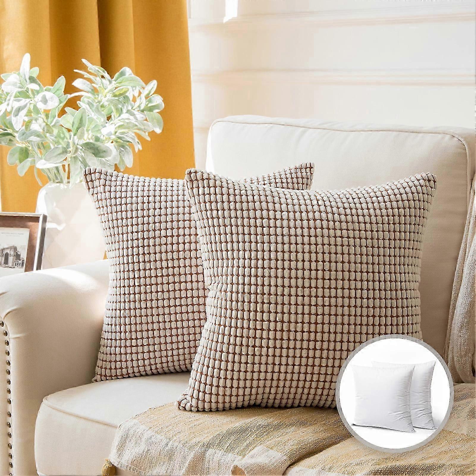 Phantoscope 20" x 20" Transitional, Cozy, Concise Beige Polyester Blend Throw Pillow, (2 Count)