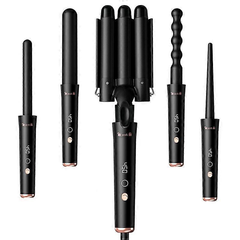 PHC7 Black Hair Curling Iron with 4 Temperature Levels, 5-in-1 Design, 5 Different Attachments: Includes 3 Hair Curling Iron Barrels, 3 Barrel Sizes, and a Comb. Easy to operate, it can help you create loose, large, and beautiful S-waves. The hair curling iron features a PTC heating element with an LED display and a 360° swivel cord. The curling iron heats up quickly to 180°C, eliminating the need for long waiting times and offering a fast 30-second heating time. The high-quality curling iron heater with curling function provides unparalleled heat distribution. About the Automatic Curling Iron: Easy to use: The quick-installation design makes it easy to change the curling wand to create different hairstyles. The anti-scalding tip and a heat-resistant glove can protect your hand from being scalded. AUTOMATIC HAIR CURLER Take a small strand of hair and slide it sideways into the curler slot. It curls the hair inside, so you can get charming, long-lasting wave hair. Built-in anti-tangle design, the hair rollers will stop working when the hair is placed too far or incorrectly. Note: Please change the rotation direction to release your hair. Lightweight and Portable This rechargeable curling wand can last 40-60 minutes (actual runtime depends on temperature settings) after a full charge, and can even be used as a power bank, bringing super convenience. It can be easily put in bags, the preferred styling tool for business trips and travel. The handle adopts a more comfortable ergonomic design, which is convenient for female beauty lovers to use it anytime, anywhere. Please note: If this product has a plug component, it will be shipped randomly according to European or Australian standards. Specification issues will not be considered a reason for after-sales service. Thank you for your understanding. (You need to bring your own adapter plug)