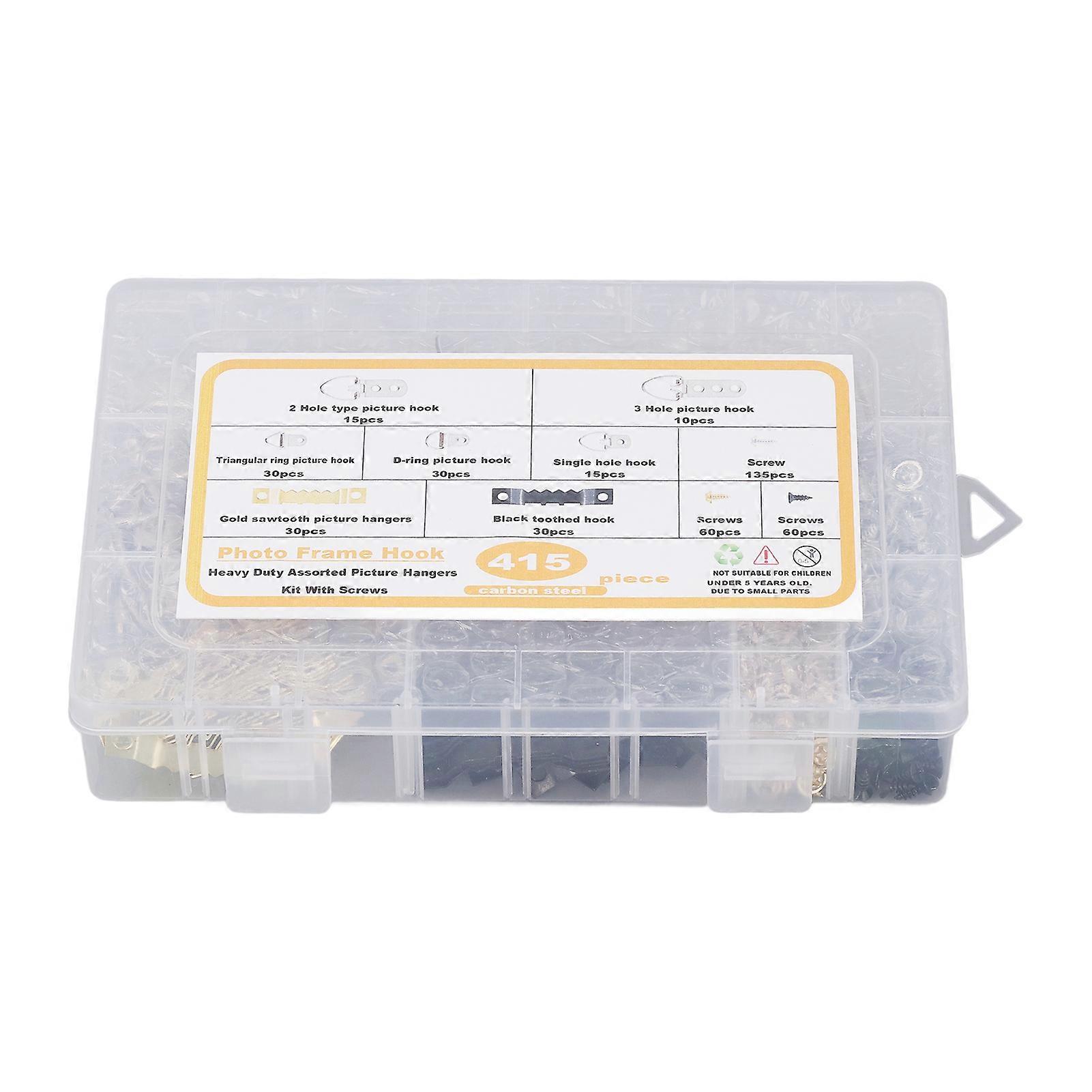 Picture Hangers Kit Heavy Duty Assorted Frame Hook with Screws Transparent Box 7 Models