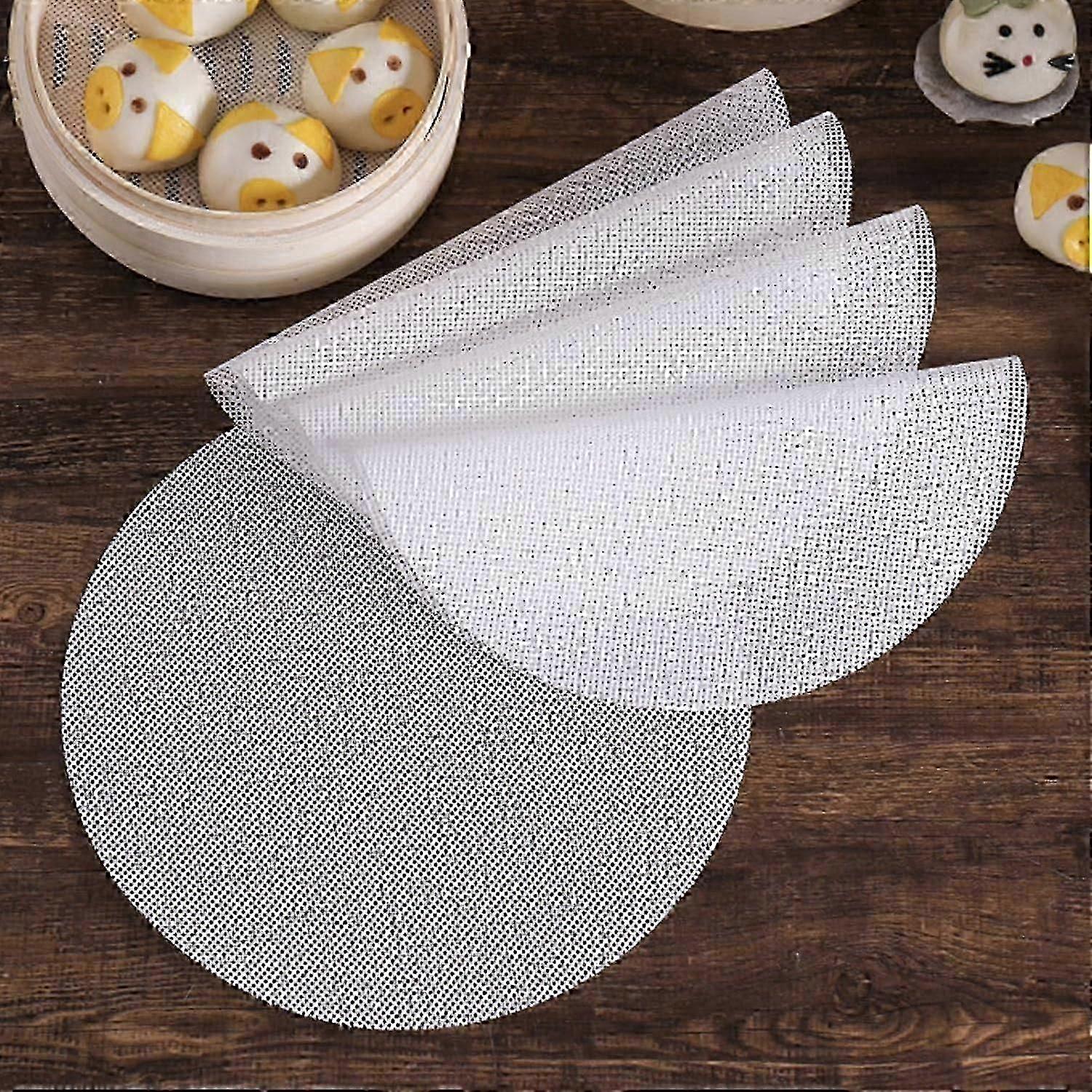 pieces Silicone Steam Mat - 32 cm - Reusable - Baking Mats - With non-stick coating - steam paper - For dumplings, buns, Dim Sum - Round - White