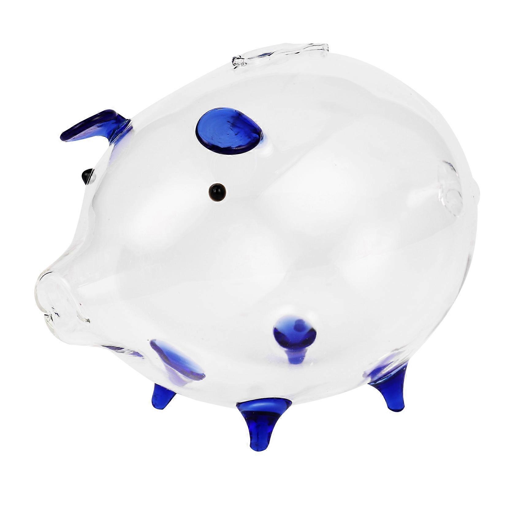 Pig Bank Coin Saving Box Transparent Glass Blue