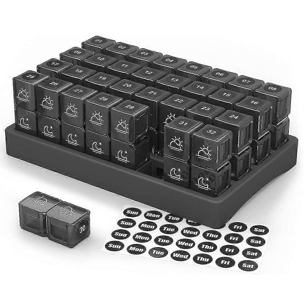 Pills Organizer Monthly Portable 1 Month Pill Box Cases With 32 Twice A Day Am Pm Compartments For Vitamins Fish Oil Medications