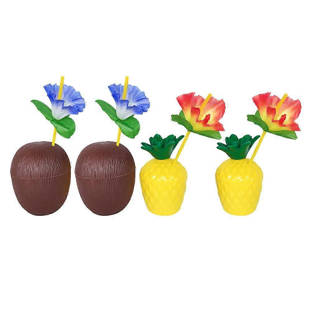 Pineapple Shaped Cups 4 Sets of Drinking Cups with Straws Tropical Style Perfect for Beach Party Birthday Parties and Hawaiian Luau