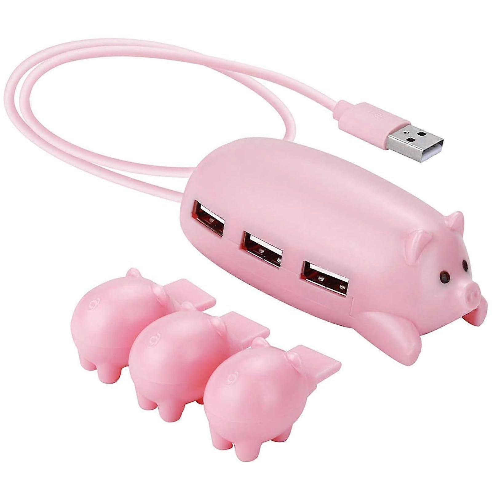 Pink Pig USB Hub 3-Port With Piglet Lids, USB Splitter For Hard Drives, Mouse Keyboard, Gift For Pig Lovers