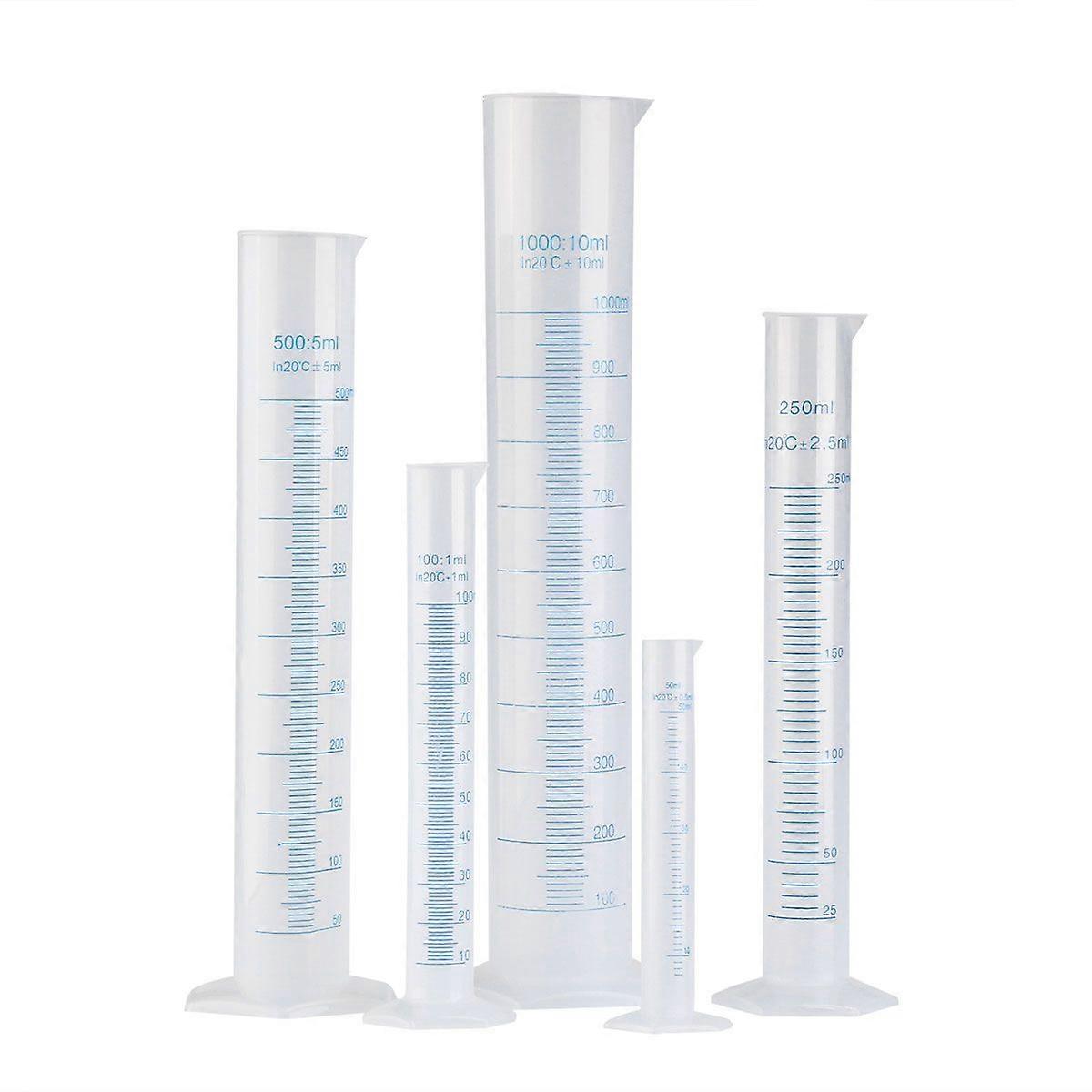 PIXNOR 5pcs Transparent Measuring Plastic Graduated Cylinder 50ml / 100ml / 250ml / 500ml / 1000ml