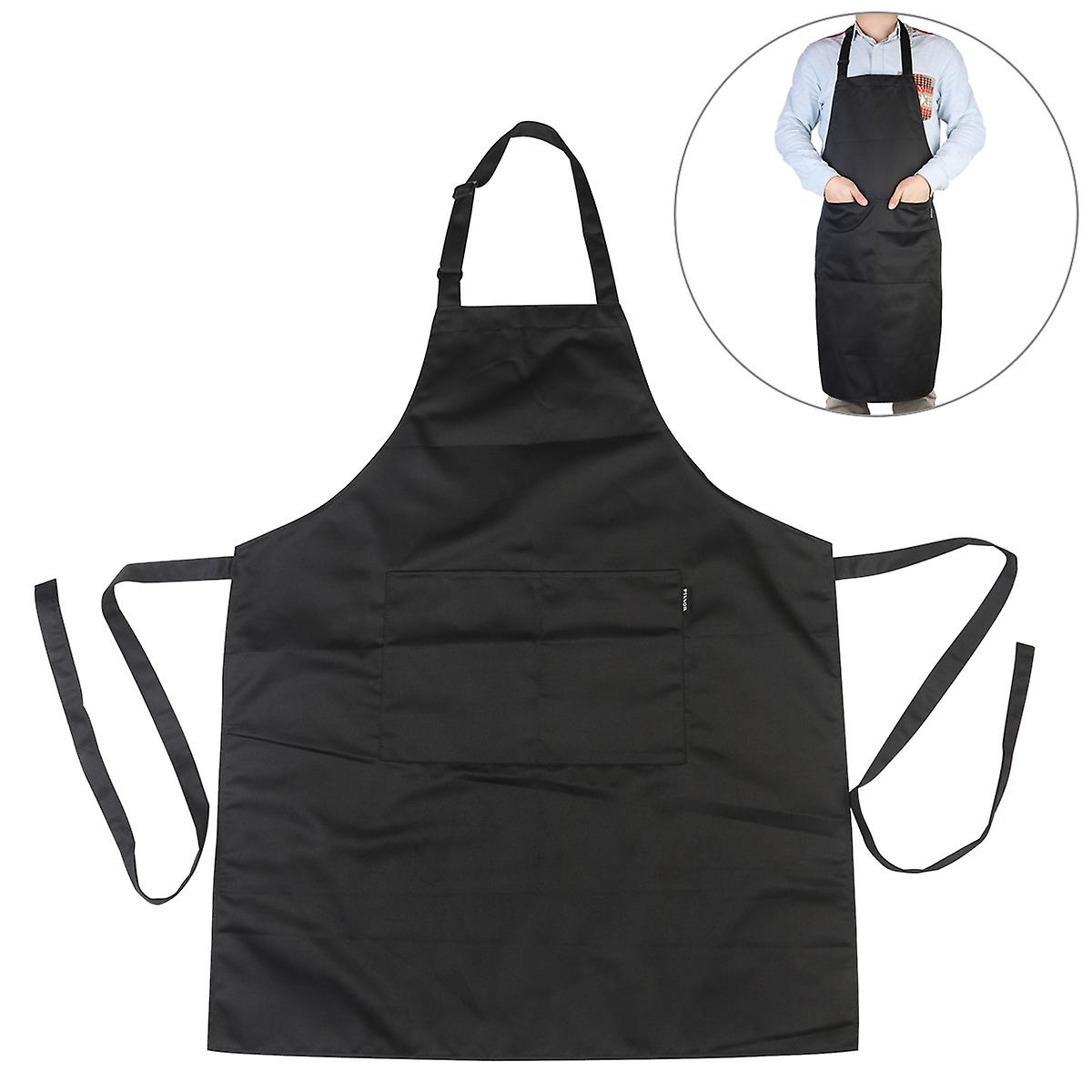 PIXNOR Black Adjustable Bib Chef Kitchen Apron with Pockets for Cooking / Baking / Barbecuing