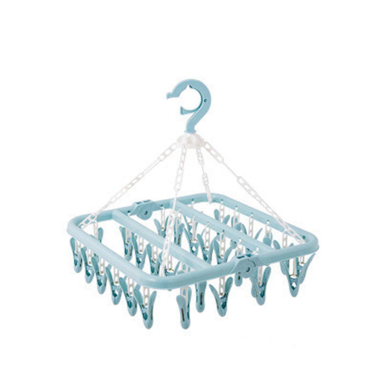 Plastic Foldable Clip Space Saving Indoor Socks Drying Rack Description: Durable plastic and special windbreak design allow for use indoors or outdoors. Material: plastic Size: (L * W * H) approx. 32 * 32 * 35 cm A shower curtain rod, pull-out clothesline or garment rack can be attached to the shower rail. It's compact and convenient for drying short t-shirts, underclothes, scarfs, towels, socks, shorts and more. Package Include: Package: 1 x coat hanger