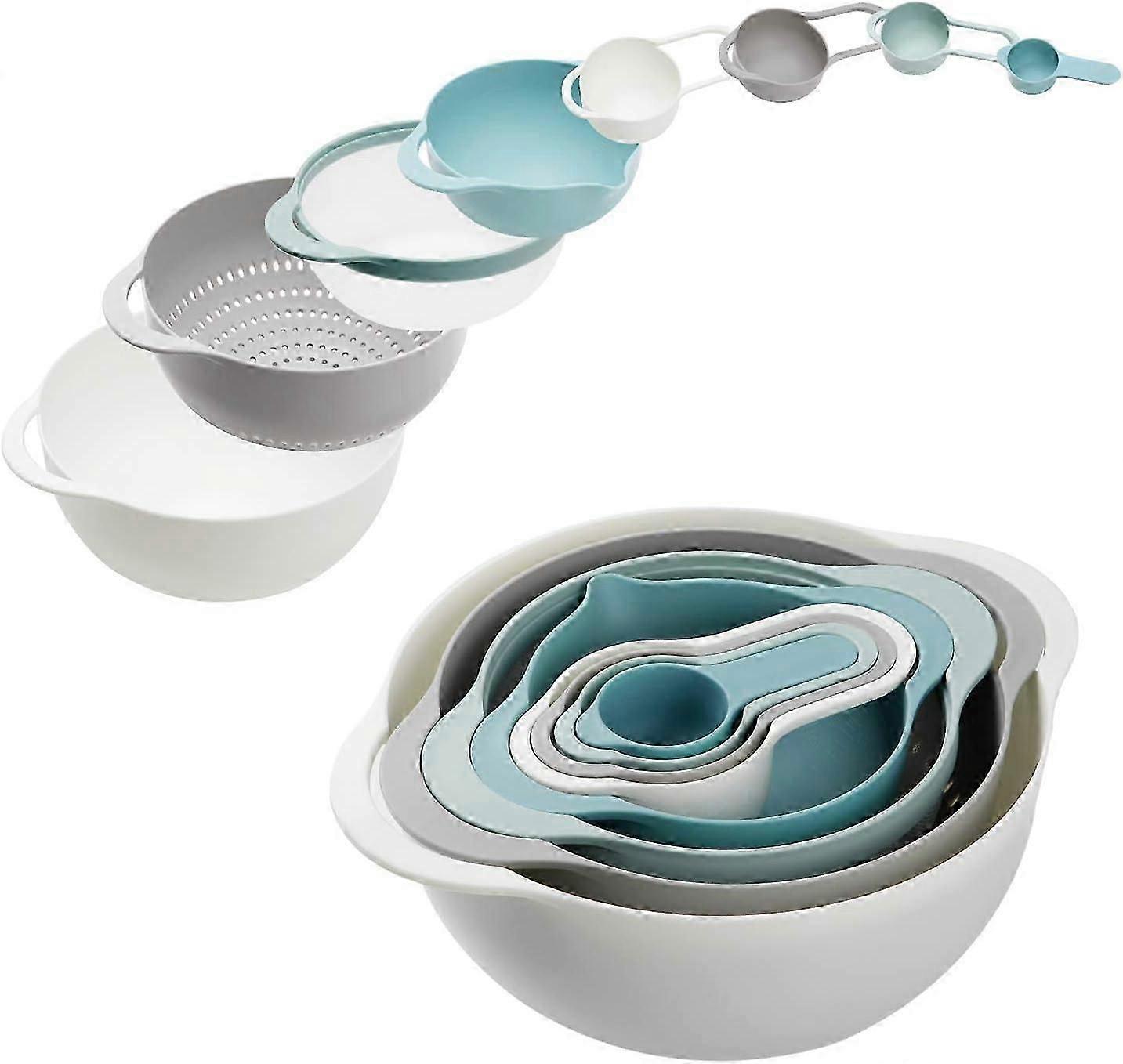 Plastic Mixing Bowls - Multicolored Mixing Bowl Set of 8, Nest for Easy Storage, inculding Measuring Cups, Colander, Sifter, Large Bowl, Great for Coo