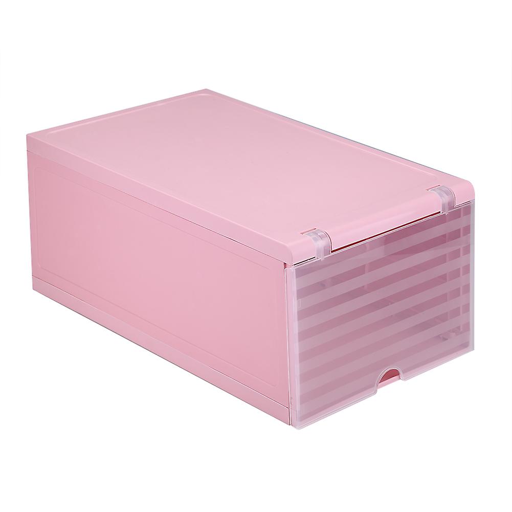 Plastic Shoes Storage Box Case Transparent Clear Home Organizer Stackable Boxes Pink
