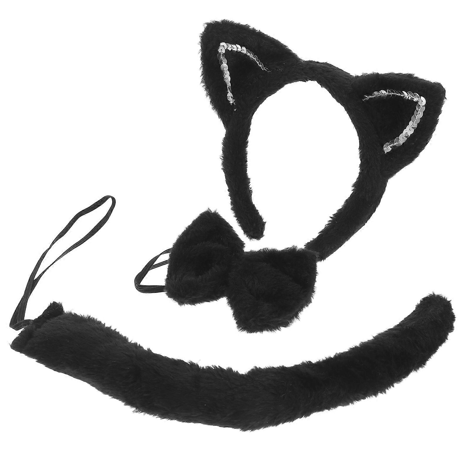 Plush Cat Ears Headband Set for Cosplay 1Set with Tail and Bowtie Accessory