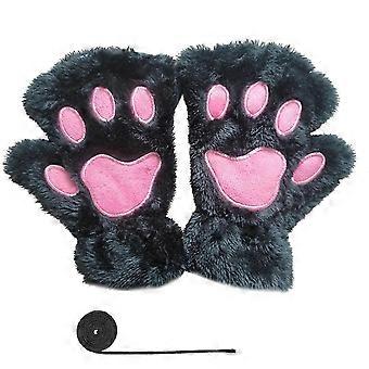 Plush Fingerless Winter Gloves with Cat Claw and Bear Paw Pattern,for men and women