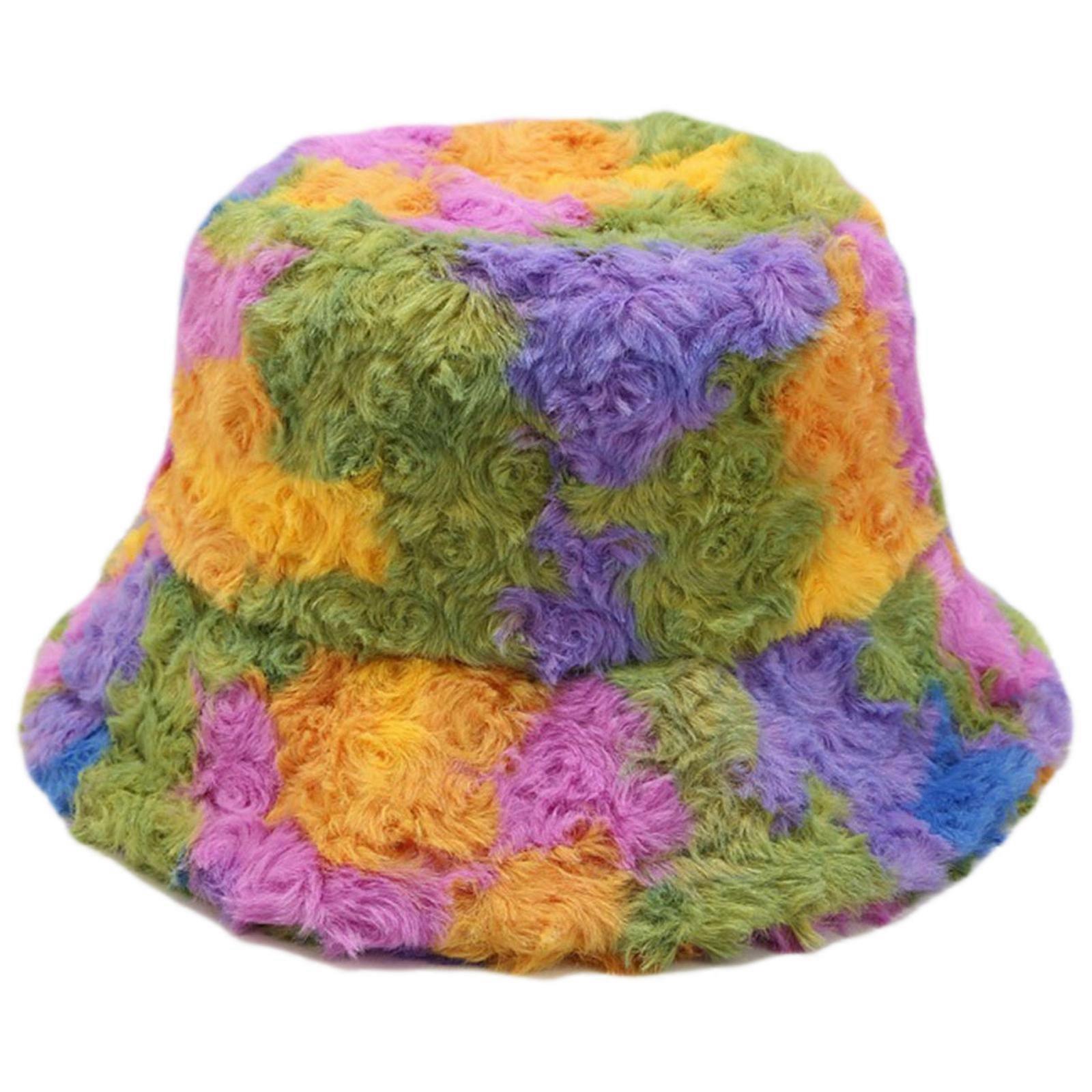 Plush Fisherman Cap Fluffy Bucket Hats Winter Warm Fuzzy Plush Bucket Hat Printed Pattern Wide Brim Sunscreen D model
