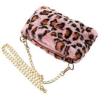 Plush Leopard Phone Bag Cross Body Bag for Storage Pink Soft Material