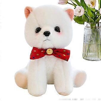 Plush toy for dogs, plush dog, plush toy for puppies – plush dog toy with bow, cute, sitting, 23 cm / 9 cm, red