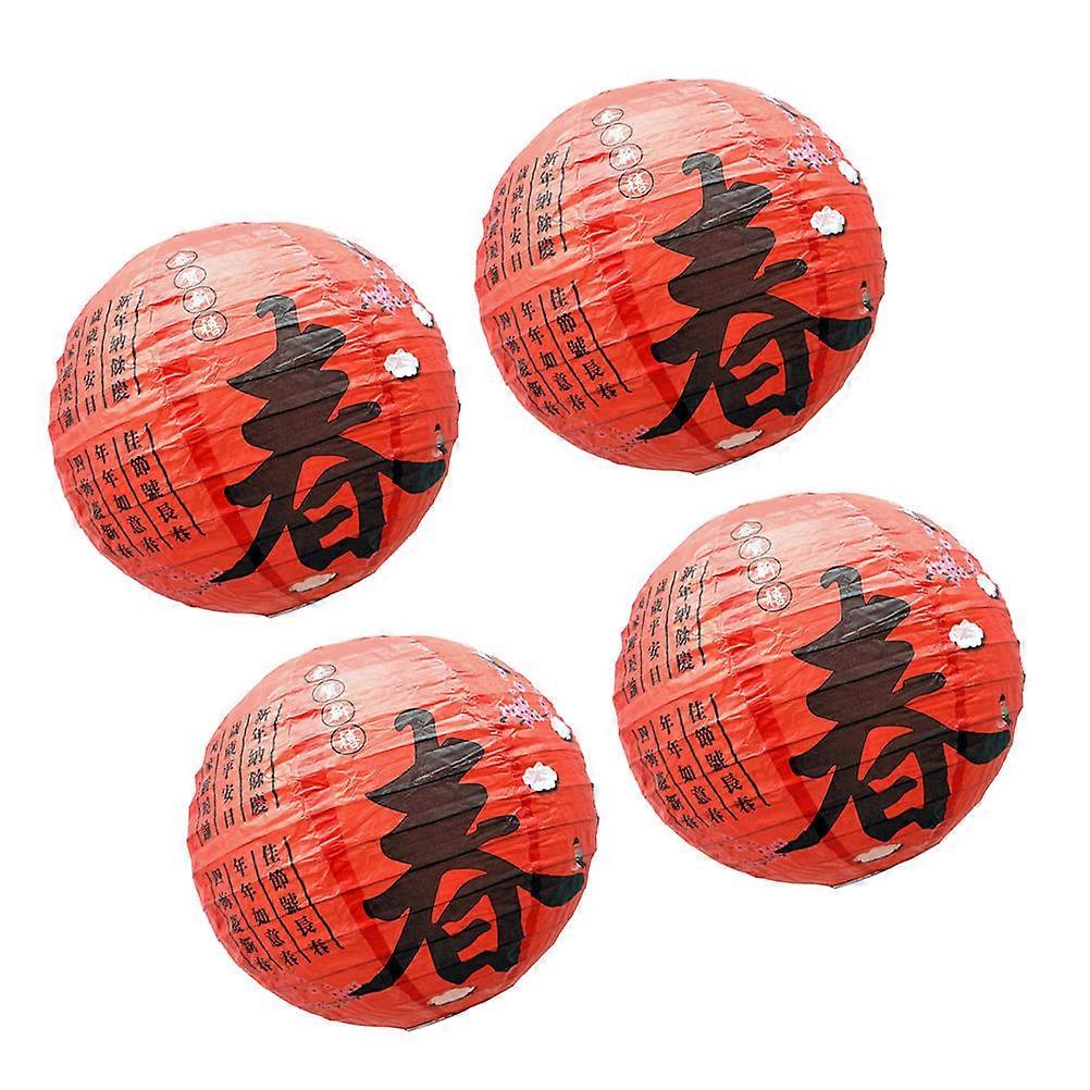 Poem Printed Lanterns Red Lantern Decoration for 4Pcs Pack