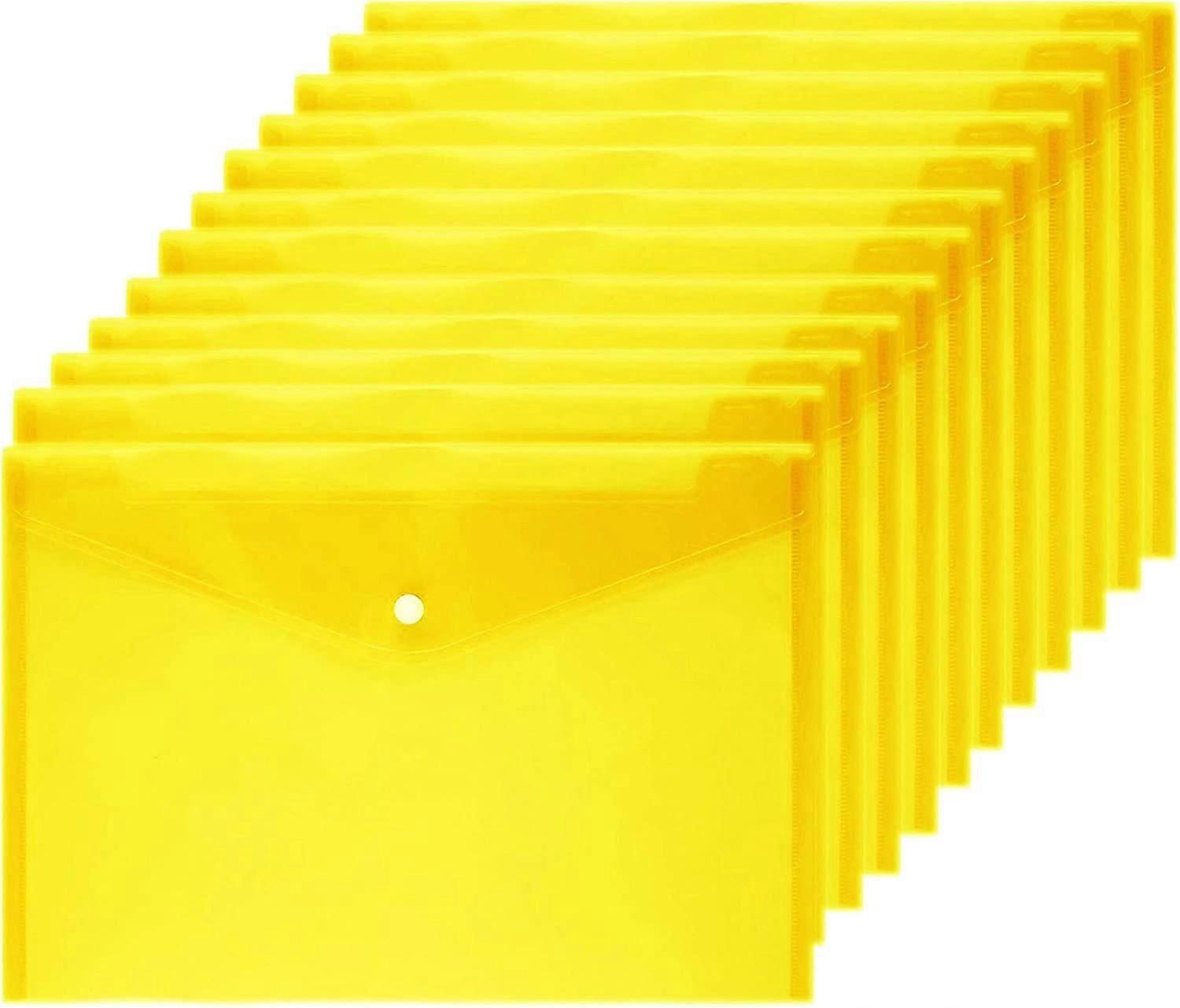 Poly Envelope, 12 Pack, Push Button Document Envelopes, Quality Clear Folder for A4 Size Documents (Yellow)