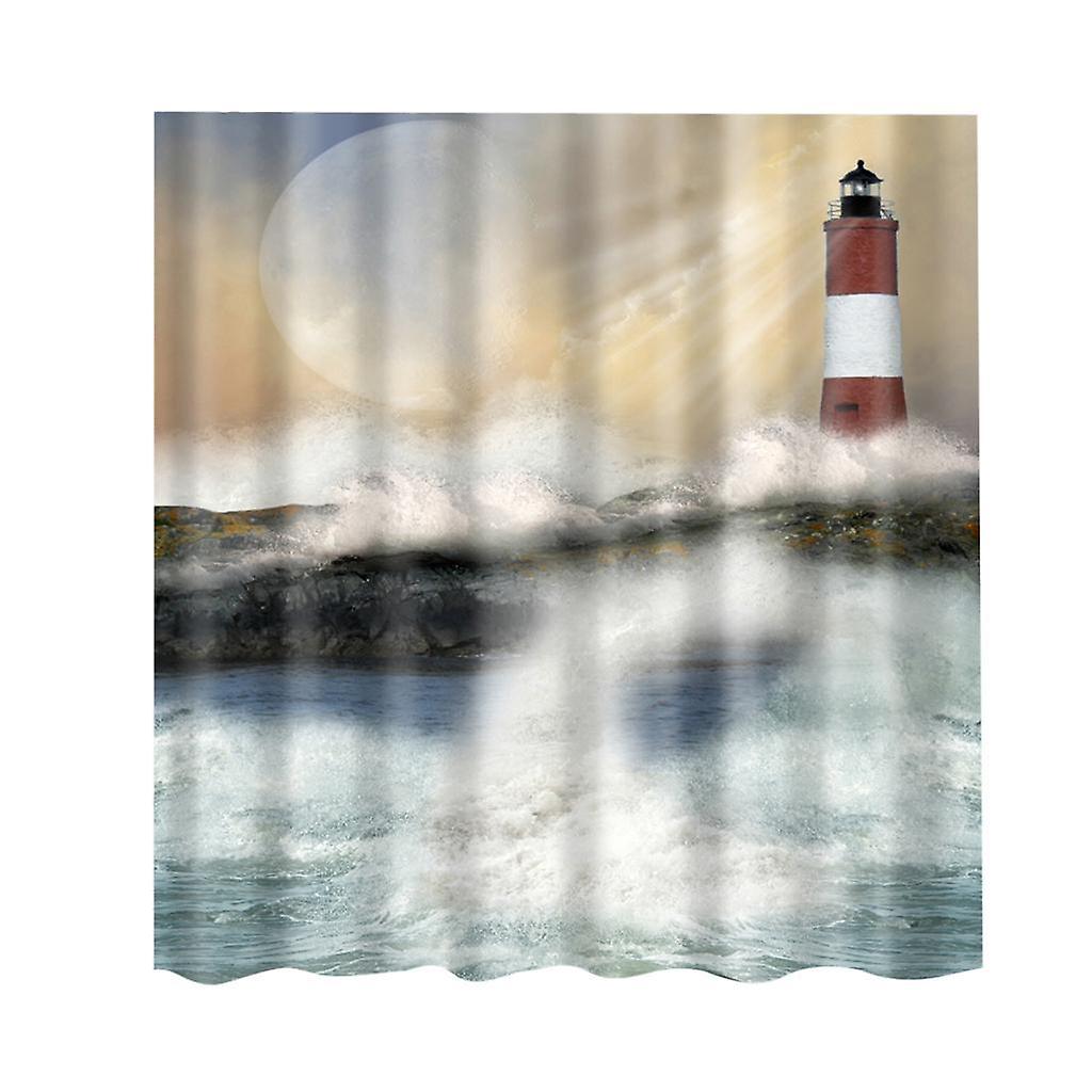 Polyester Shower Curtain with Hook Set Bathroom Hanging Decor Lighthouse