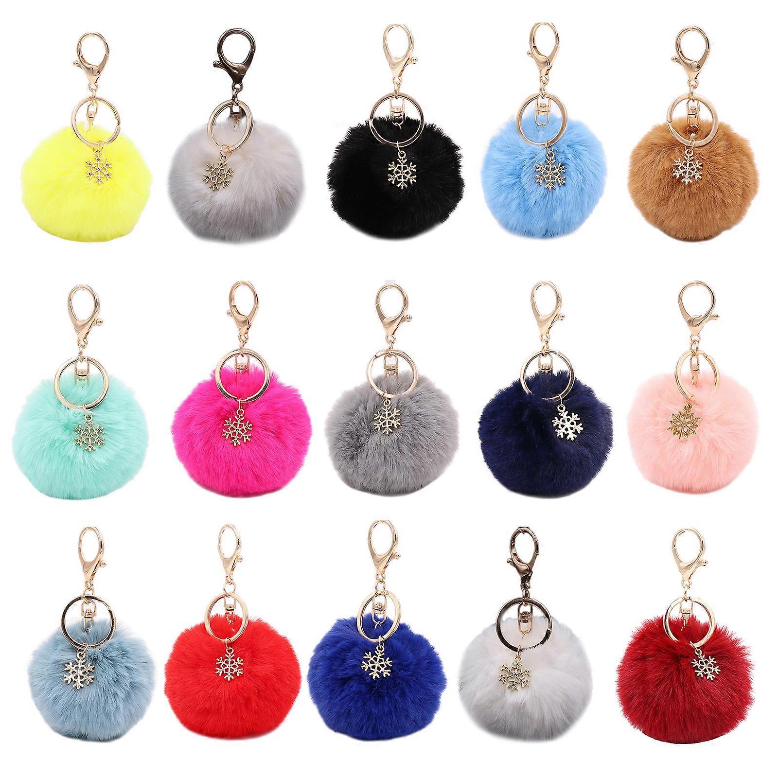 Pom Pom Keychain with Snowflake Pendant Charms Furry Fluffy Plush Ball Keyring sapphire
