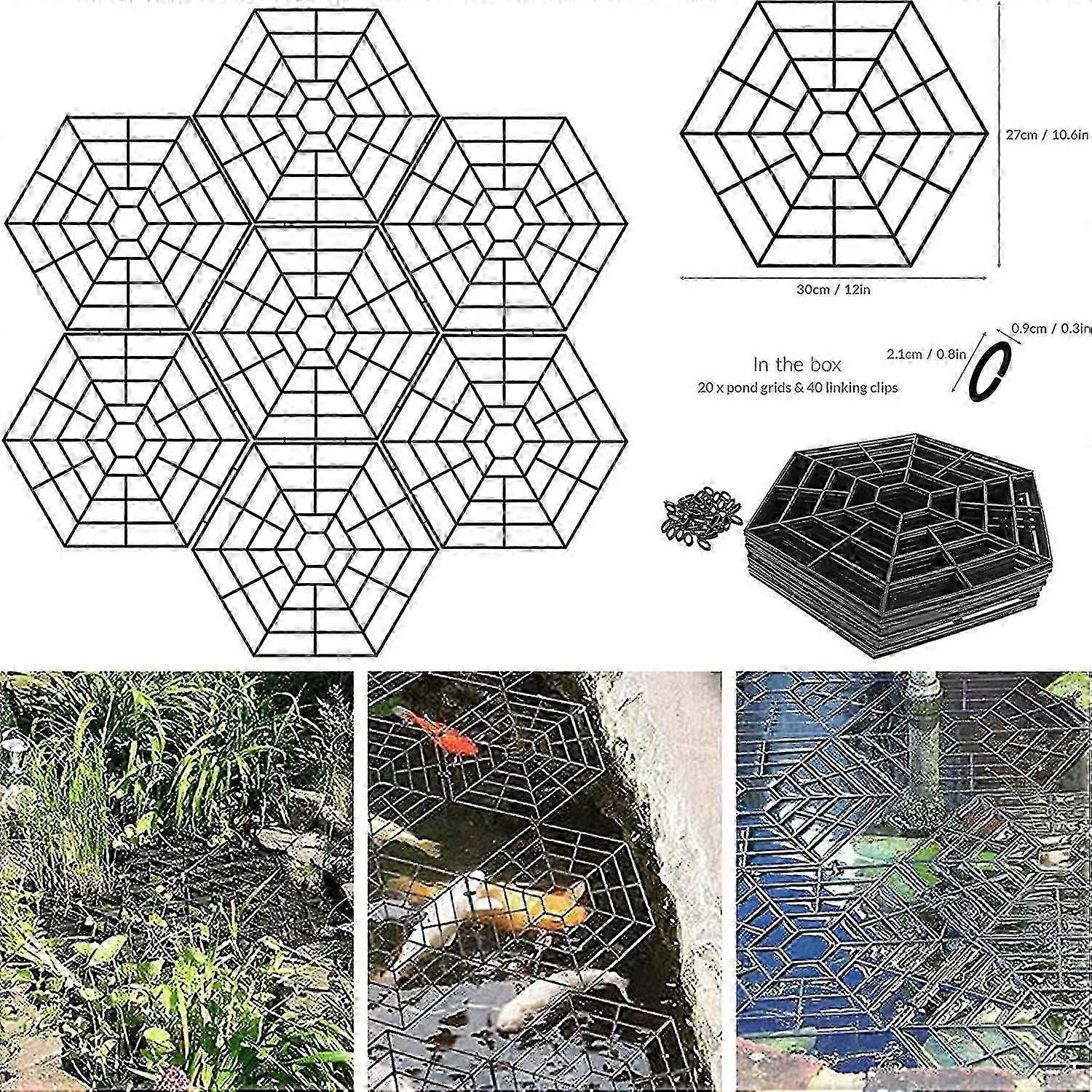 Pond Protectors 20 Pack Plastic Web Hexagonal Pond Guard Netting Floating on Water Resist Herons Racoons Cats Crows Seabirds