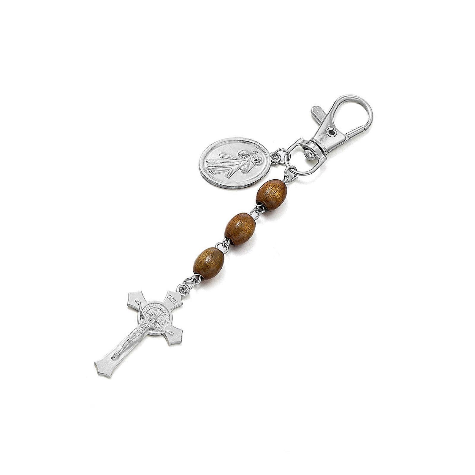Portable Accessory Keychain with Alloy Crucifix Wood Beads for Expressing Charm During Commute or Travel Conveniently light brown