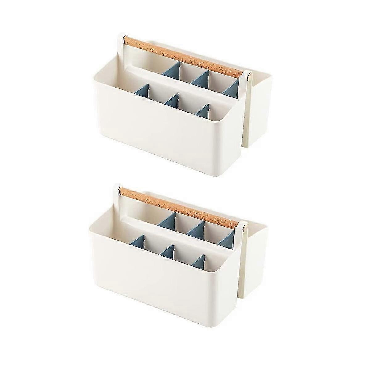 Multiple Use: storage including crafts, , colored pencils, markers, scrapbook supplies, photo storage, as well as for makeup brushes, cosmetics, eyelash curlers, lipstick, blush, blenders, essential oils, hair spray, hair brush, contour kits, contour kits, and cleaning products. Removable dividers: the grid inside can be moved, you had better place some bigger objects in that neighboring grids. High-quality Thickened Plastic PP with Handle: The basket measures 9.8inch x 7.1inch x 5.9inch (25 x 18 x 15 cm) and weighs 0.9 lbs (408 g), and very durable. The container with a beech wood handle so it can be carried easily to where you need it. Color: White & Blue Material: PP Package Contents: 2 x Portable Basket Only the above package content, other products are not included. Note: Light reflection and different displays may cause the color of the item in the picture a little different from the real thing. The measurement allowed error is +/- 1-3cm.