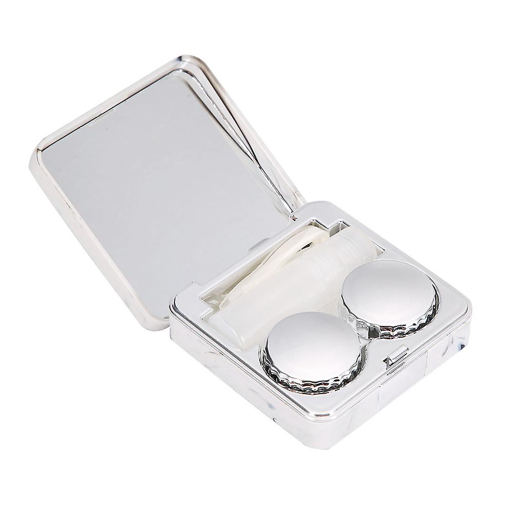 Portable Marble Surface Mirror Square Soaking Contact Lens Case Silver
