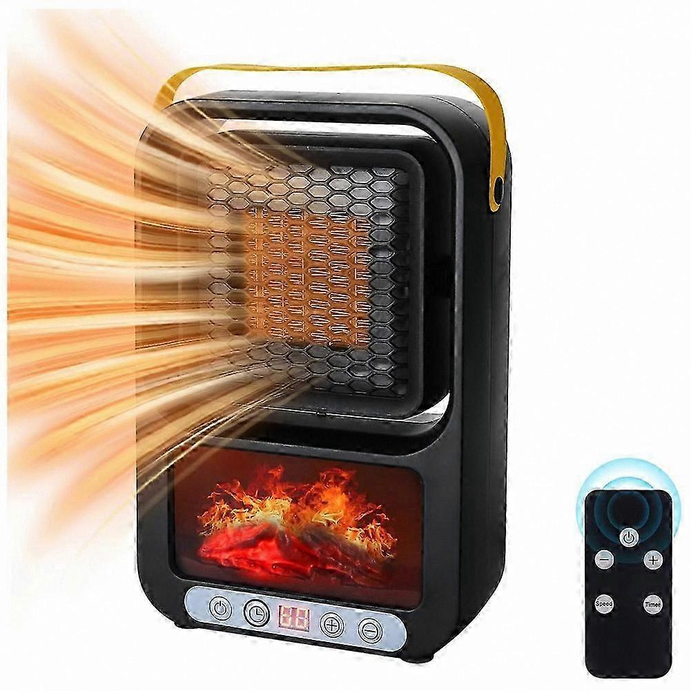 Fast Heating & Wide Coverage: This small room heater rapidly warms up your space, providing immediate comfort in cold weather. The space heater for indoor use effectively covers up to 200 square feet, making it ideal for bedrooms, desks, bathrooms, and dormitories, creating a warm environment. 2 Heating Modes & Smart Remote Control: Choose between two settings—high (1000W) and low (700W)—to suit your needs. The included remote control allows you to adjust the settings from a distance, offering convenient operation. Energy-Saving Electric Heater: Equipped with a built-in thermostat, this electric heater automatically turns off when the desired temperature is reached, helping conserve energy. It turns back on when the temperature drops, maintaining consistent warmth while reducing electricity usage. Portable Design with Carry Handle: Lightweight and easy to move, this heater features a carry handle for convenient portability. Use it in bedrooms, living rooms, or home offices with ease. Realistic 3D Flame Effect: Enjoy a lifelike 3D flame effect that mimics the appearance of real burning logs. This realistic display adds elegance and coziness to any room, enhancing the atmosphere without an actual fire. Plug Type: EU Plug Voltage: AC 220V Color: Black Material: Plastic Note: Slight color variation may occur in the actual product, which does not affect performance. Package Contents: 1 x Space Heater 1 x Remote Control