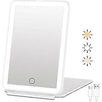 Portable Rechargeable Travel Makeup Mirror with 72 LED Lights, 3 Color Lighting, Dimmable Touch Screen, Foldable