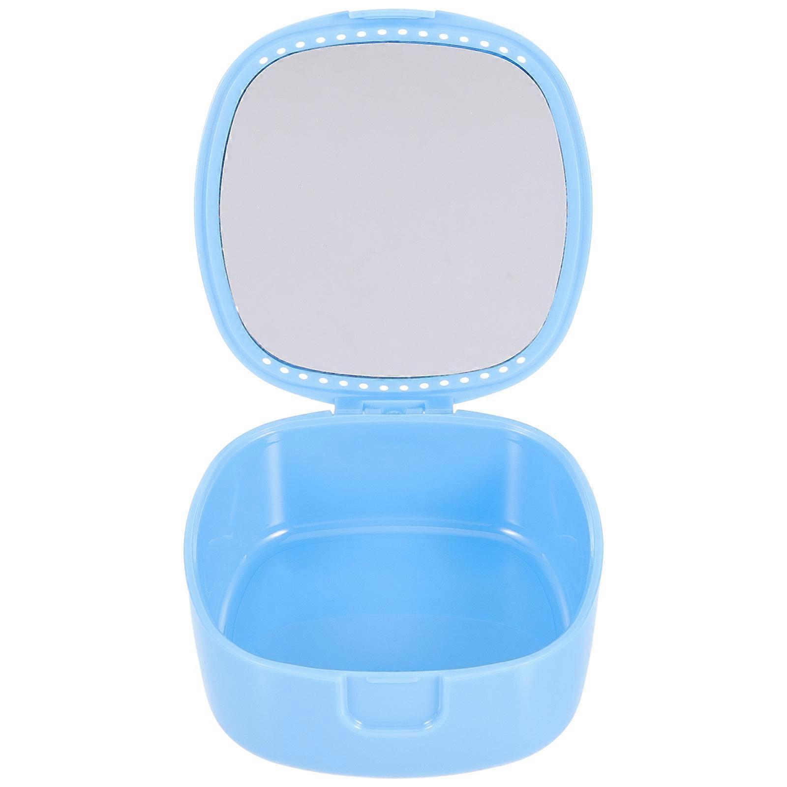 Portable Retainer Case Denture Box with Mirror for Storage 2Pcs Blue