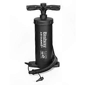 The Air Hammer Inflation Pump is a reliable inflation pump designed for use with a variety of inflatable products. It features 3 valve adapters that fit most standard inflation valves and operates efficiently on both up and down strokes, allowing for faster inflation of large items. The pump is equipped with a quick-switch mechanism for easy transition between inflation and deflation, making it ideal for airbeds, paddling pools, kayaks, and other pool inflatables. Features: - Operates on both up and down strokes - Simple switch between inflation and deflation - Includes 3 valve adapters to fit most inflation valves - Flexible hose for easy connection - Durable, heavy-duty construction - Suitable for a wide range of inflatable products Size: 37 cm (14.5") Stroke Volume: 2.8 L/cycle