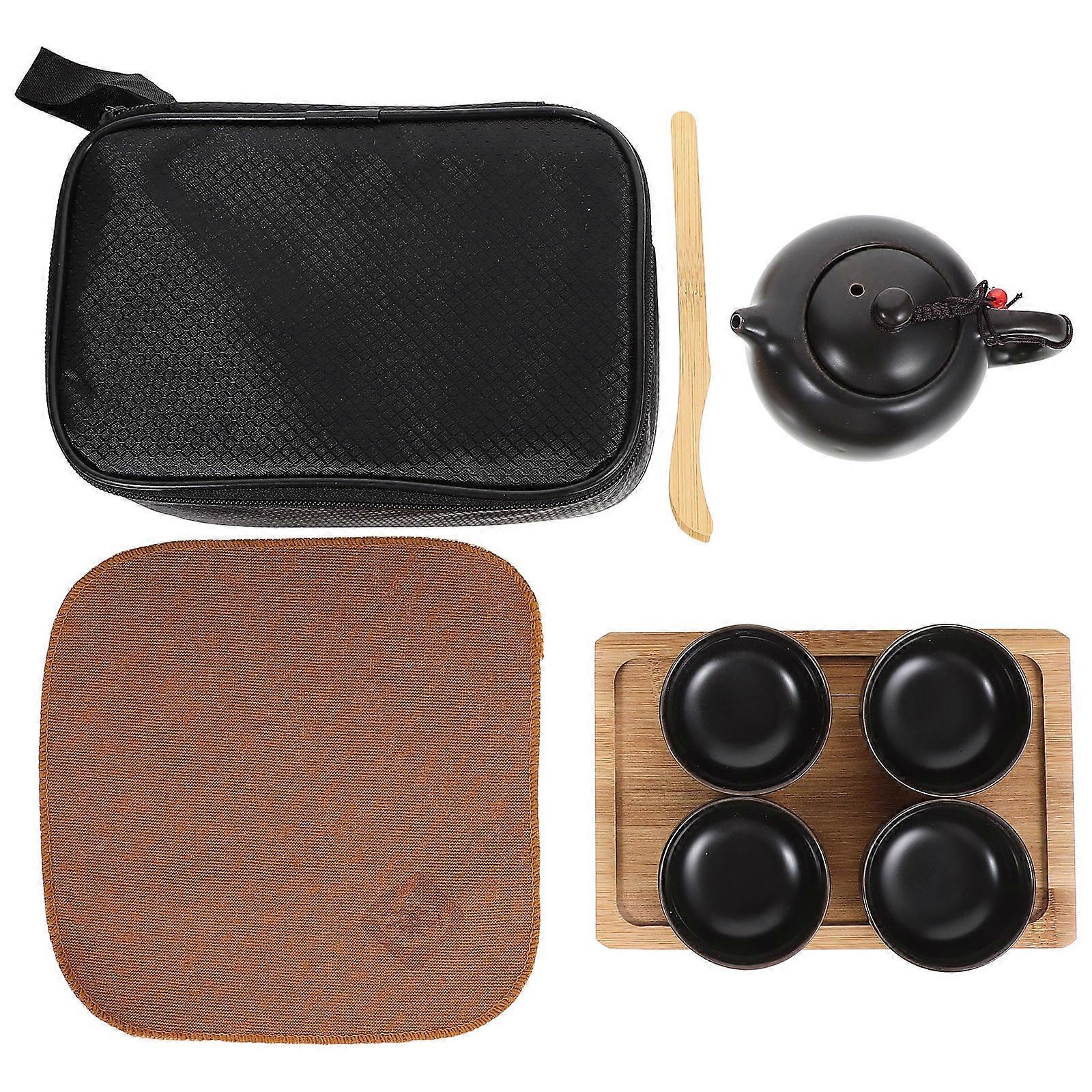 Portable Travel Tea Set with Ceramic Teapot and Teacups Wooden Tray Assorted Color Includes 1