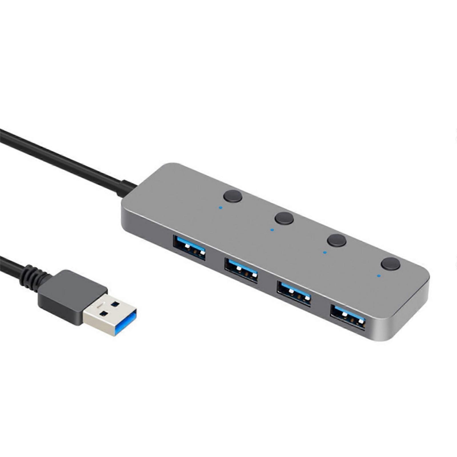 Portable USB 3.0 4 Port Hub with Individual Switches for Easy Peripherals Connection Fast Data Transfer Plugs and Play Multicolor