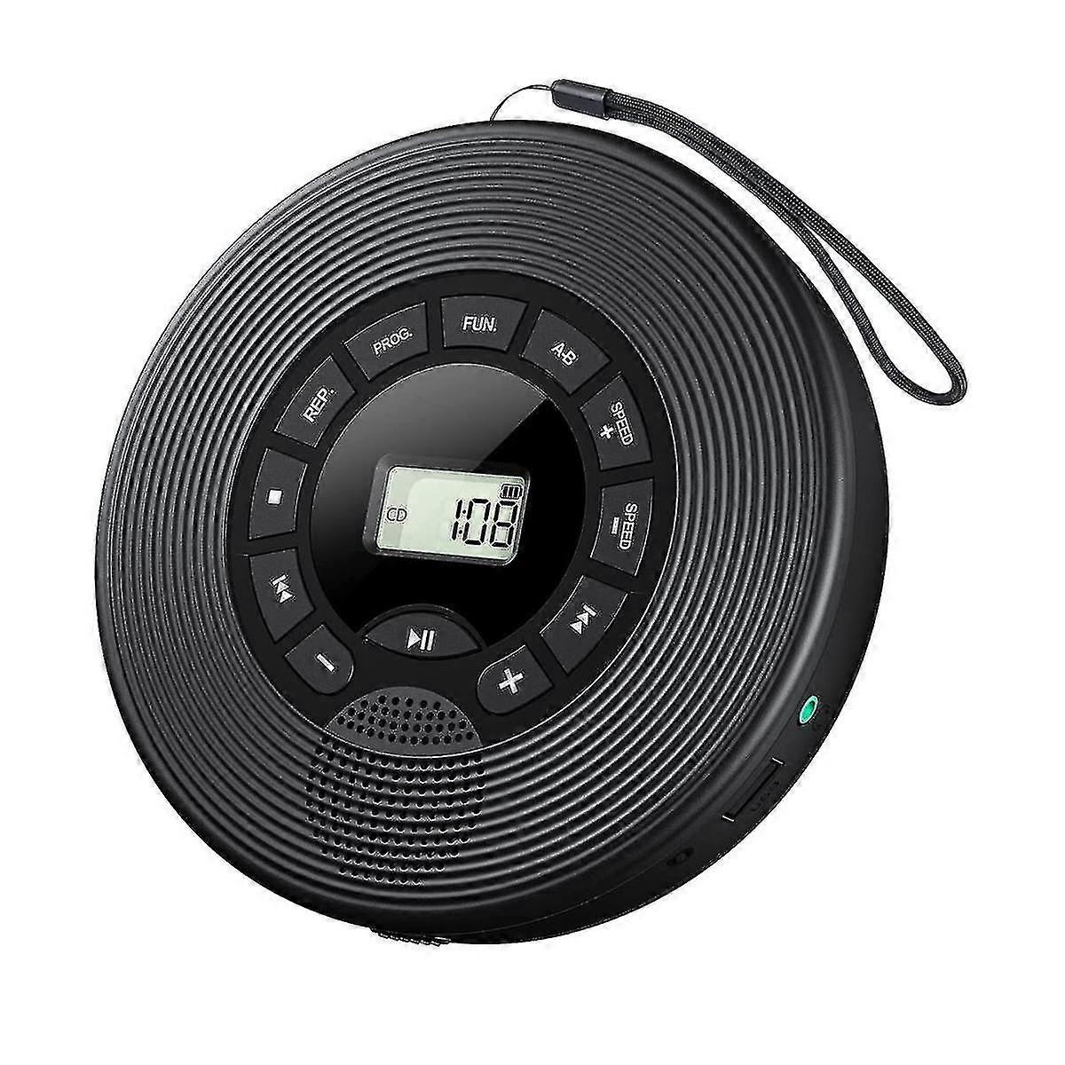 [Multi-functional CD players] CD player with speaker supports CD, CD-R, CD-RW, CD-MP3, WMA audio formats to play CD discs, and it can also be played via Bluetooth, USB stick, and AUX cable. With A-B repeat, memory and PROG play function, it's a great choice for music lovers, language learners, child education, and prenatal education, and the best gift for friends, family, and students [Portable CD Player with Internal Battery] CD player portable is built-in 1500mAh rechargeable battery for 4-6 hours playing time. No need to use AA batteries or plug into the power while using. A full charge takes about 3 to 4 hours with included USB cable via a DC 5V / 2A adapter. Portable design, convenient to carry it anywhere you want to enjoying music [Bluetooth Mode] this CD player is built-in high-performance Bluetooth chip, with 33-foot Bluetooth connectivity area, you are enable to connect with your phone, tablet, MP3 player, but not speakers or earphones. NOTE: If you want to connect your car audio, please make your car has AUX port, it can only be connected with car audio via AUX cable, but NOT Bluetooth [TWO Ways to Enjoy Music]CD player Portable is built-in dual stereo speakers and 3.5mm headphone jacks. As a wireless CD player, you can share your music with friends via internal speakers or Bluetooth speakers. As a wired CD player, you can enjoy music via earphones or connect it to home theater, music center via included audio cable, enjoy a of music . size: 8.27 x 6.42 x 2.2 inches Material: Plastic colour: black Package Contents: 1 x CD Player 1 x Headphone 1 x USB Cable 1 x Audio Cable 1 x English User Manual Only the above package content, other products are not included. Note: Light reflection and different displays may cause the color of the item in the picture a little different from the real thing. The measurement allowed error is +/- 1-3cm.