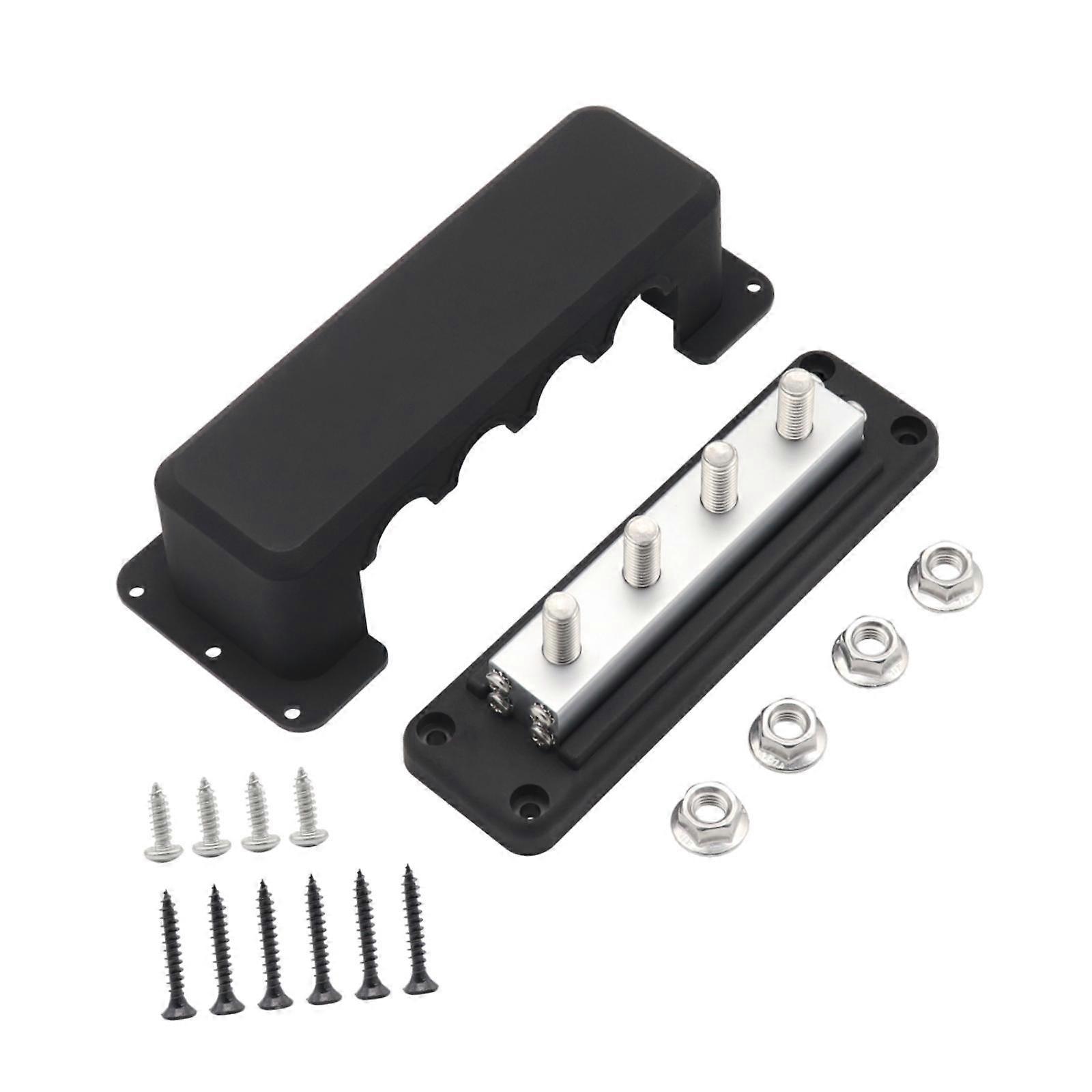Power Distribution Block Bus Bar Auto Trailers Busbar with Cover 3/8" 4 Stud Black