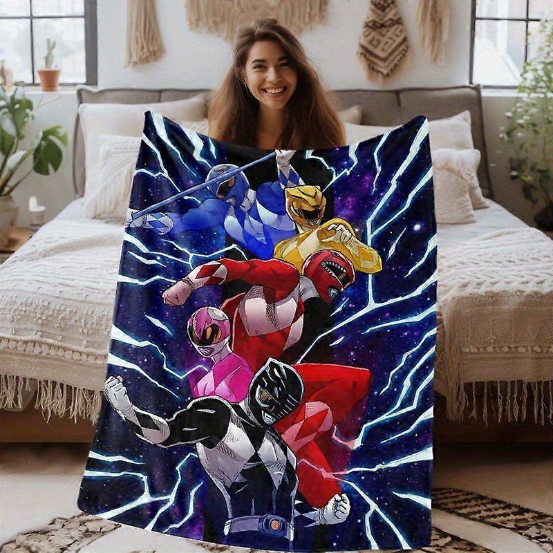 Power Rangers Five Heroes Colorful Tight-Fitting Battle Pose Display Theme Pattern Ultra-Soft Digital Print Flannel Blan-asdfg220