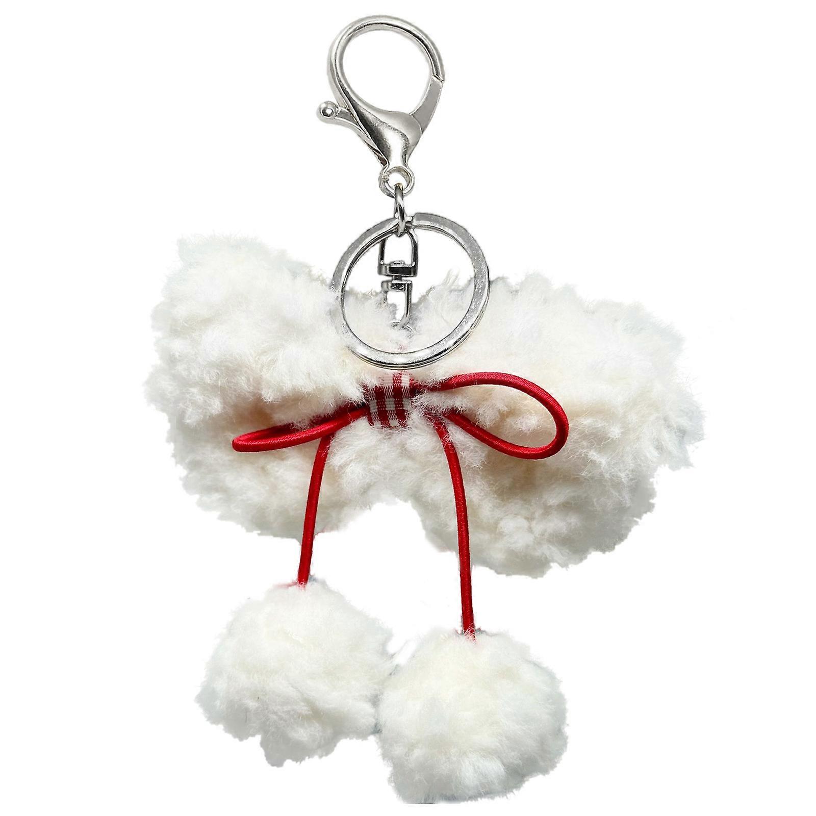 Practical Plush Bowknot Pendant Keyring Chic Bowknot Keychain Phone Straps Chain Stylish Keyring for Fashion Enthusiasts White