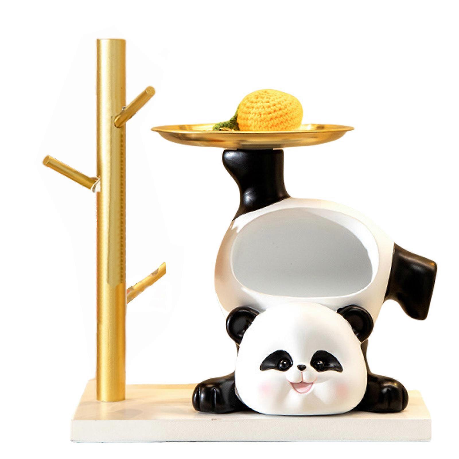 Practical Sturdy Resin Pandas Sculpture With Two Tiers Tray for Home Or Office Decoration and Practical Daily Use