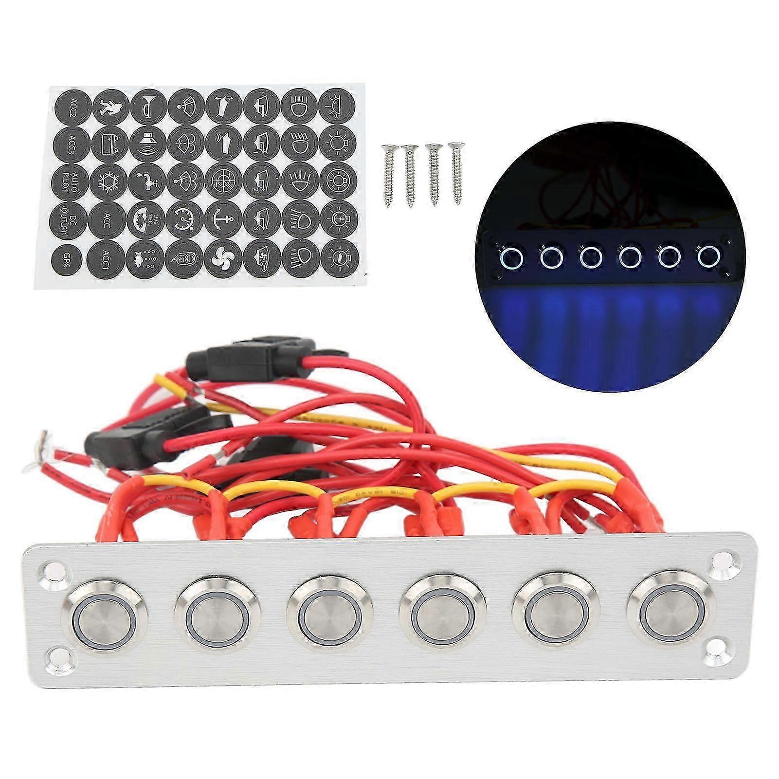 Pre Wired 6 Gang Push Button Switch Panel with Blue LED Lights for Car RV Yacht 12V DC System