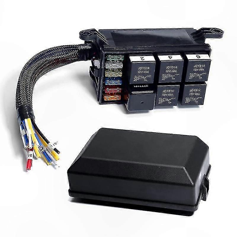 Pre-Wired Relay Box with 5x 5-Pin Relays and 1x 4-Pin Relay for Automotive Use