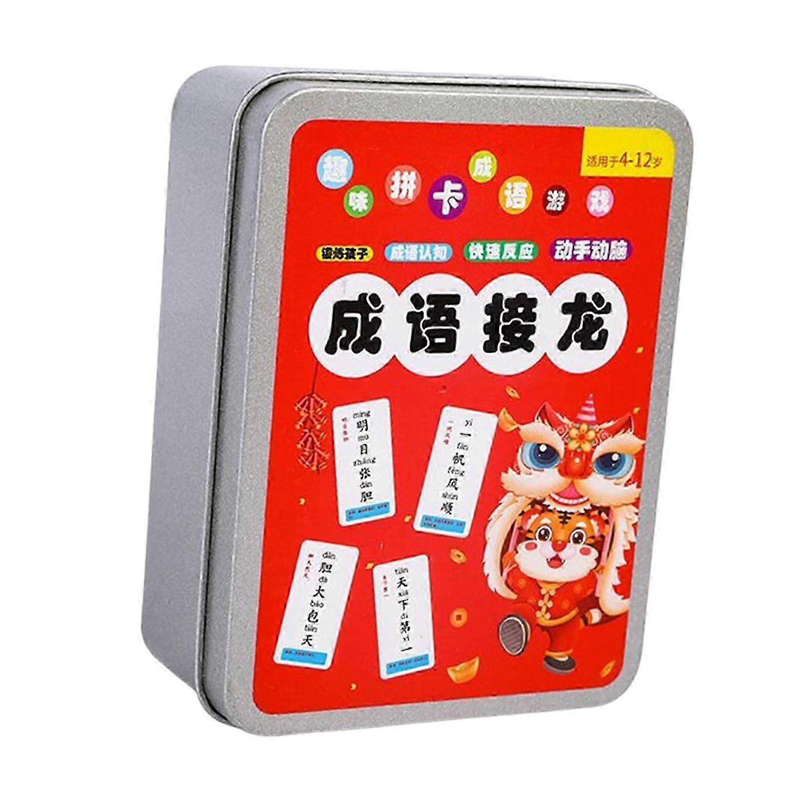 Idiom Solitaire Cards: Presented words, parent child interaction, learning to recognize Chinese idioms while playing. Fun and interesting: not experience the fun idioms, but also exercise language expression ability, reaction ability, enrich children's vocabulary, promote the development of language thinking. Material: coated paper, good toughness. The card cover, waterproof and , and clean after wiping. Rounded hard card design: thickened paper, smooth grinding, no burrs, no cutting hands. With storage box: easy to organize, help children develop good storage habits. Suitable for children aged 6-12. Specification: Material: Coated Paper box Size: 12.5cmx4.5cmx9.5cm/4.92inchx1.77inchx3.74inch Package Includes: 1 Idiom Solitaire Cards Note: 1.This is not infant toy, please take away from children to avoid eating. 2.Please allow slightly errors due to manual measurement and different monitors.