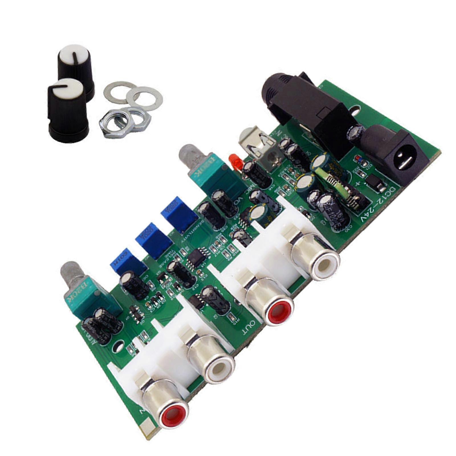 Professional Stereo Audios Signal Mixer Automatically Reduces Background Music Accompaniment Mixing Board DC12V-24V Multicolor