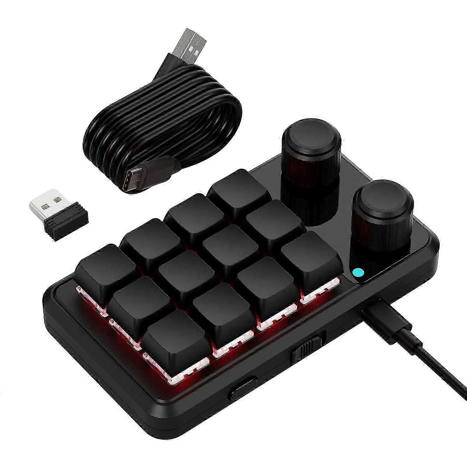 Programmable 12 Key Mini Mechanical Gaming Keypad with RGBs Backlights and Two Knobs, Wireless & USB C yellow