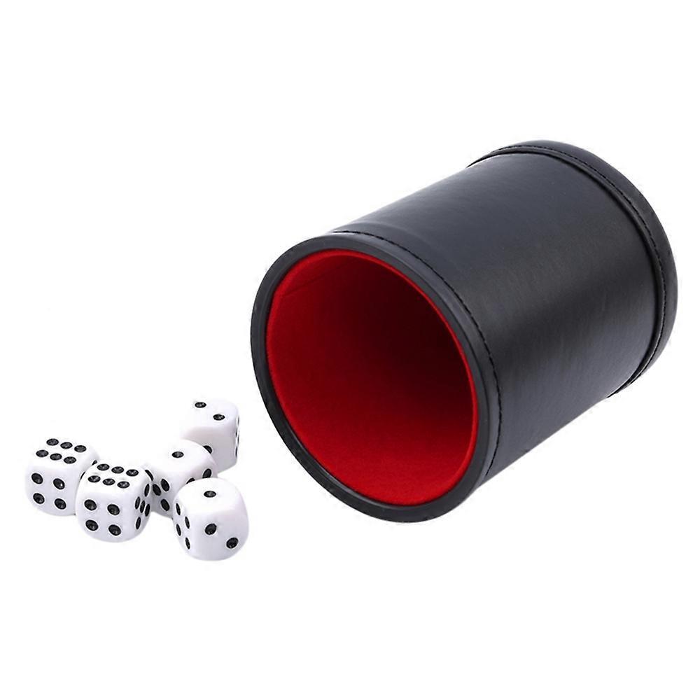 PU Leather Dice Cup Set, Flannel Lined Dices Shaker Gambling Game Props For Bar Party Dice Games, Includes 5Pcs Dot Dices