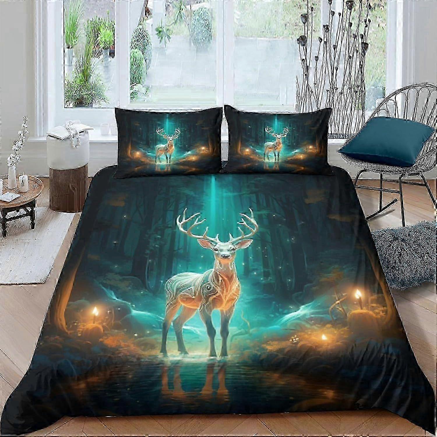 q66 Colorful Deer Quilt Duvet Cover 3 Piece Set with Zipper Closure 3D Soft Bedding Bedding Sets Microfiber Bedding Double o66