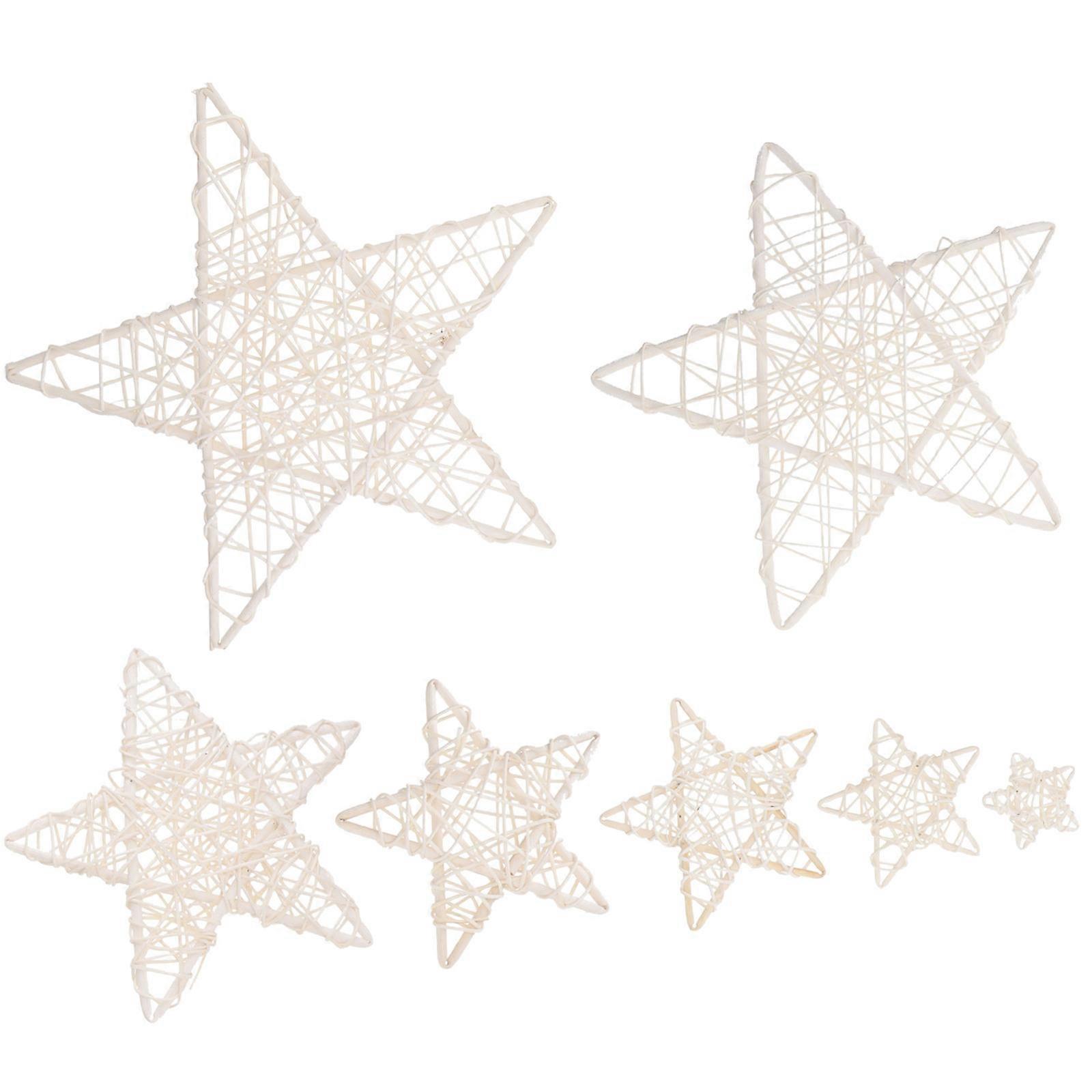 Rattan Five-Pointed Star Decor for Home Party 8Pcs Set White Rattan