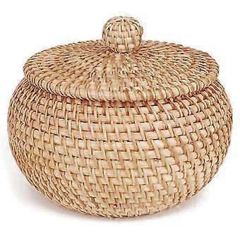 Rattan Round Basket with Lid, Bread Food Fruit Basket for Table Shelf