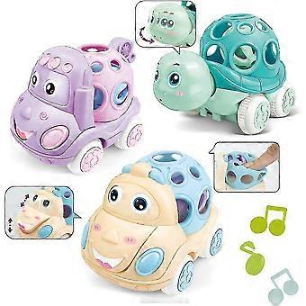 Rattle And Roll Car For Toddlers, Push And Go Toy With Soft Rubber 3 Pcs